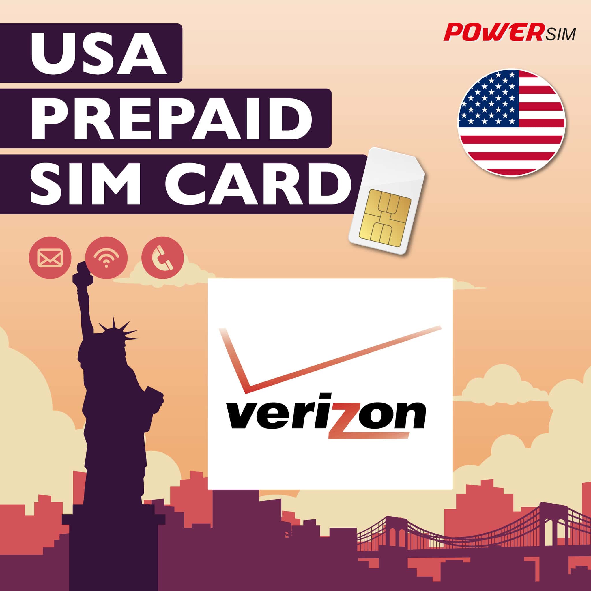 - 1x Verizon USA Reise SIM-Karte